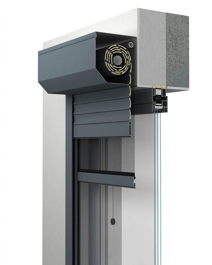 Für eine bessere Funktionalität können SK 45 Anthrazitgrau Panzer Vorbaurollladen mit automatischem Antrieb für die einfache tägliche Anwendung sowie einem einrollbaren Insektenschutznetz ausgestattet werden, die den Komfort im Frühling und Sommer bieten.